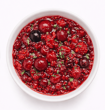 Frambuesa, Guinda ácida con toques de Albahaca y Merkén