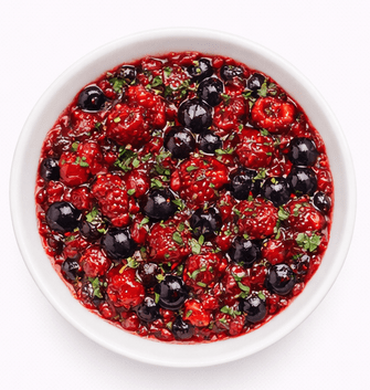 Frutilla, Frambuesa, Arándano, Hierbabuena, Albahaca y Merkén