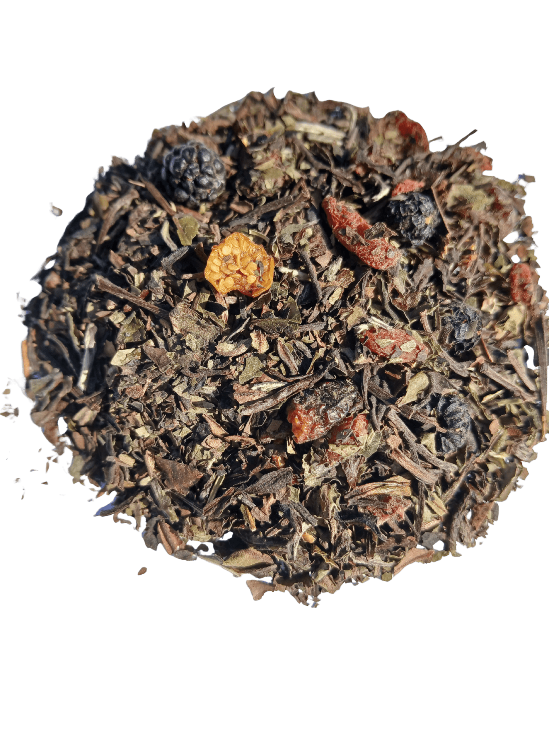 Té blanco, frambuesa, aguaymanto, goji, arándano y mora.