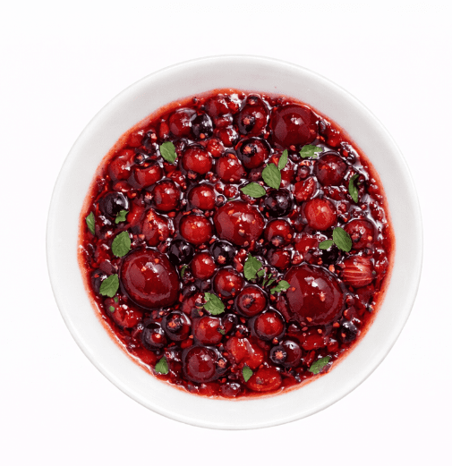 Grosella y Cereza con toques de Hierbabuena.